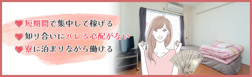 出稼ぎ風俗は効率的に高収入が得られるため、短期間で集中して稼ぎたい人に向いています。また、お店が用意した寮に泊まりながら、知り合いにバレる心配なく働けるのも魅力です。なお、出稼ぎ勤務の条件はお店によって異なるので、勤務条件が気になる人は事前にお店へ問い合わせましょう。