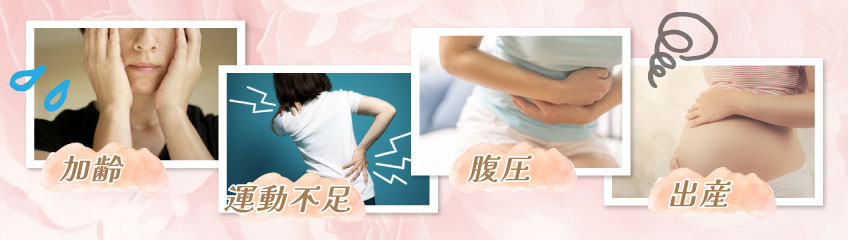 また、膣内の粘膜のコラーゲンが減少することも、骨盤底筋が衰える理由の1つです。顔と同様、膣内のコラーゲンも加齢とともに減る傾向にあります。コラーゲンは、ハリや弾力を保つのに重要な成分です。コラーゲンがなくなると、膣壁のヒダが平らになって膣圧が低下し、ちならが出やすくなると考えられています。